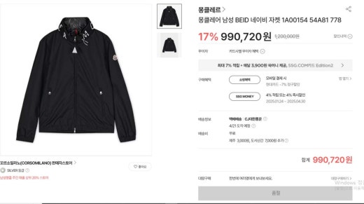 몽클레어 BEID 바람막이 자켓 블랙 남성용(1컬러)