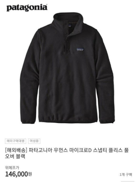 파타고니아 매.장.판 마이크로D 플리스 스냅티셔츠 블랙 남여공용(1컬러)