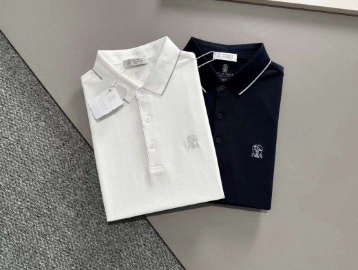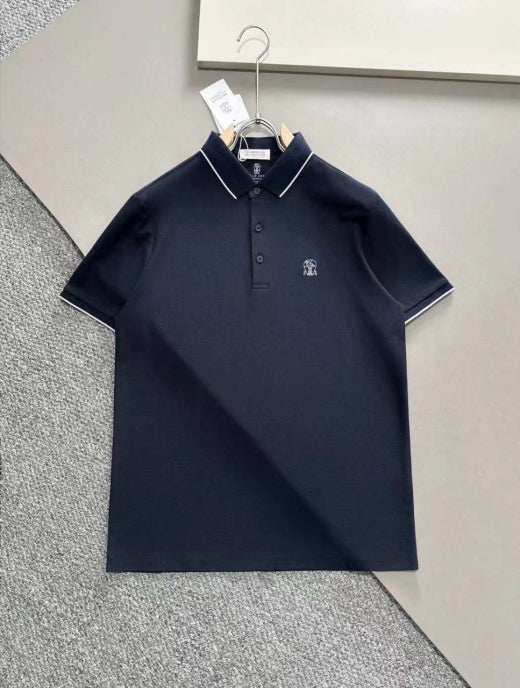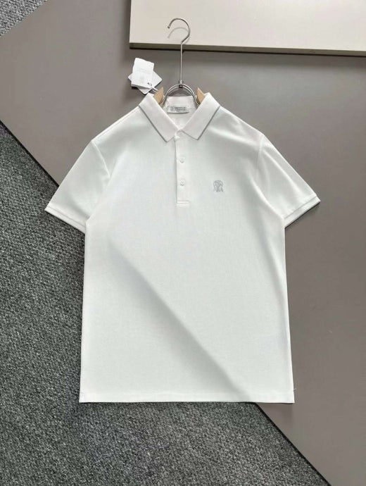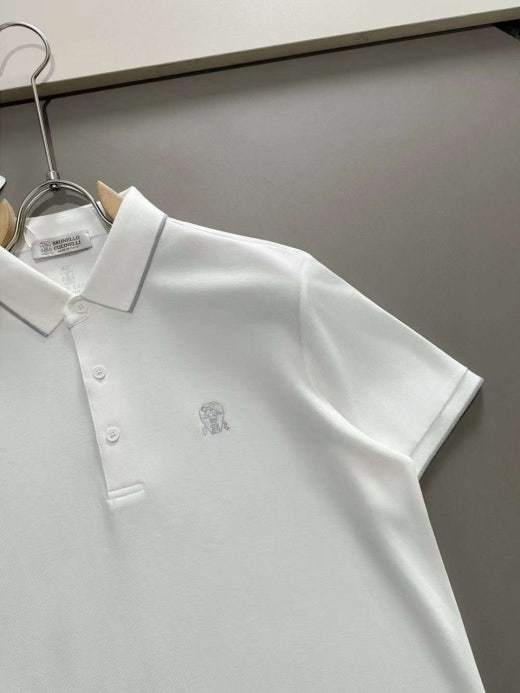 브루넬로 쿠치넬리 매.장.판 자수로고 면실크 카라 반팔티셔츠 남성용(2컬러)