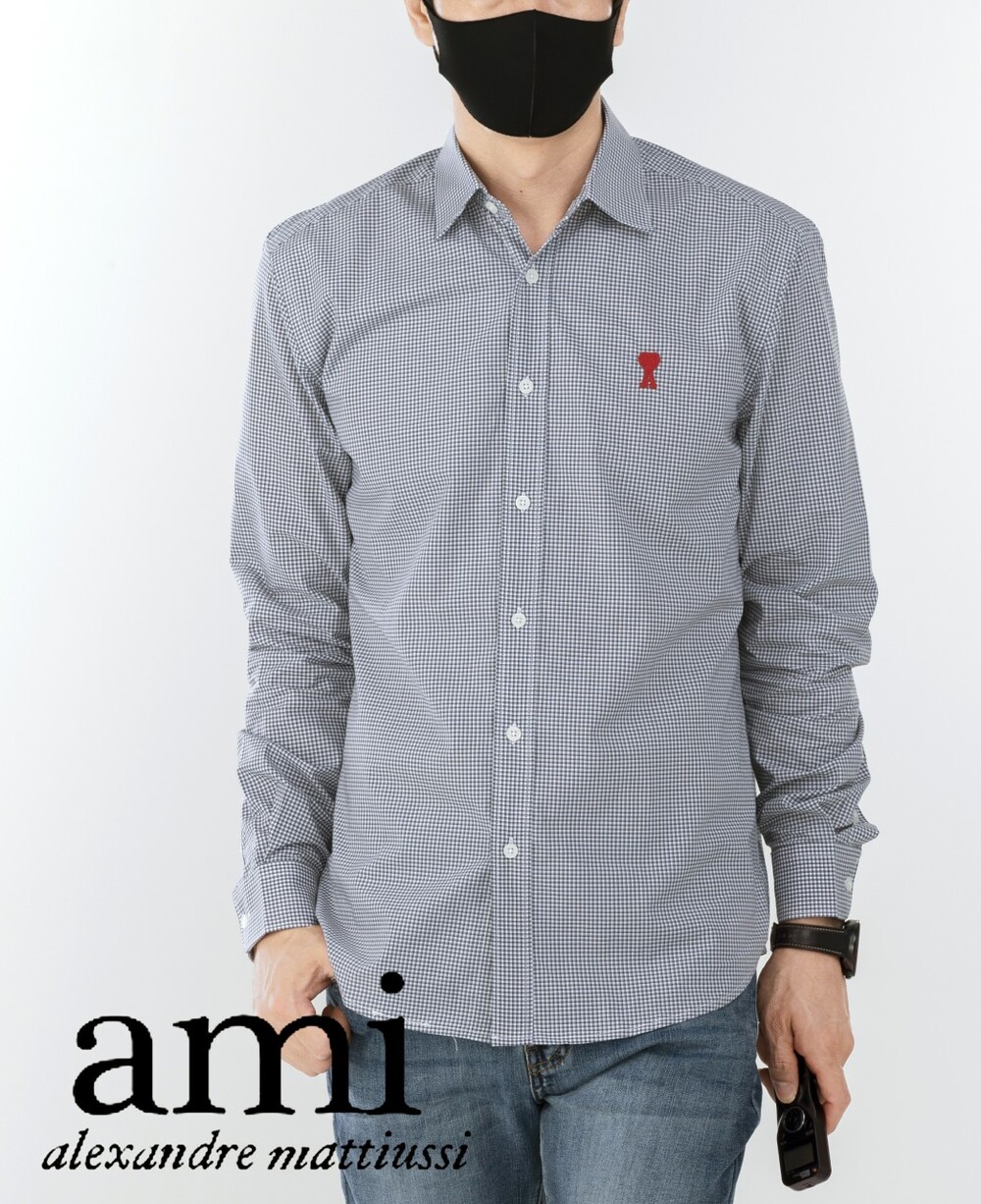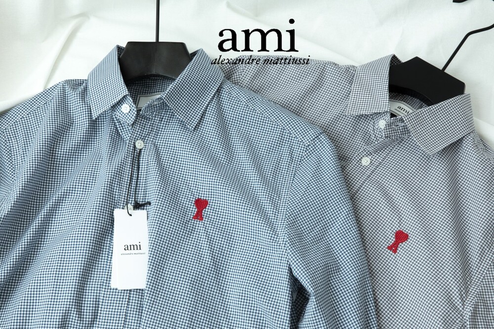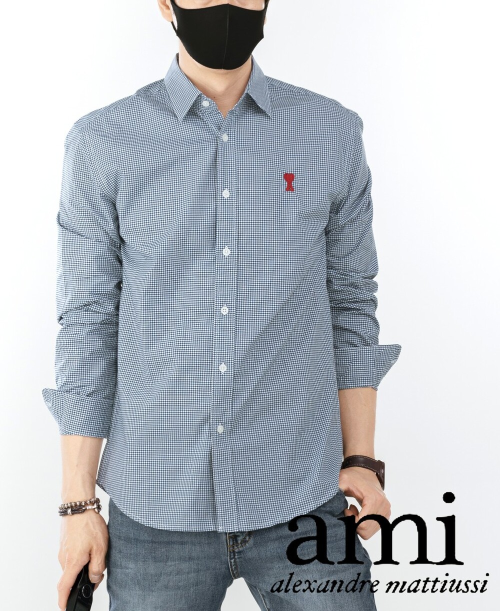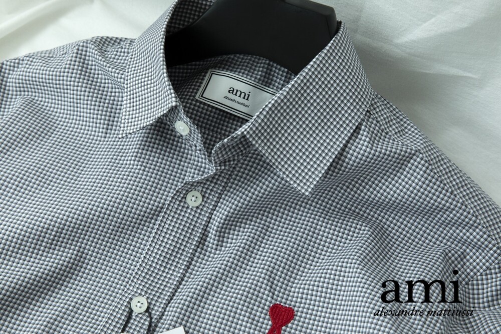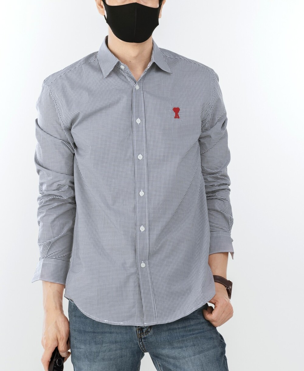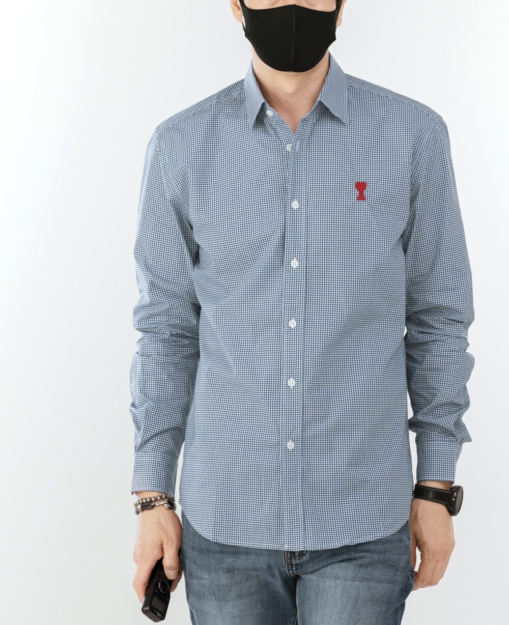 아미 스몰 하트 로고 자수 체크셔츠 남성용(2컬러)