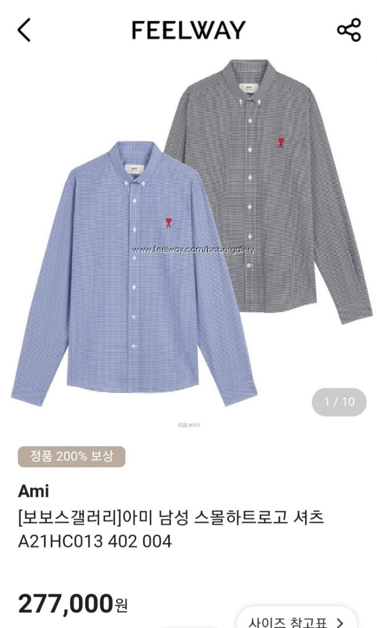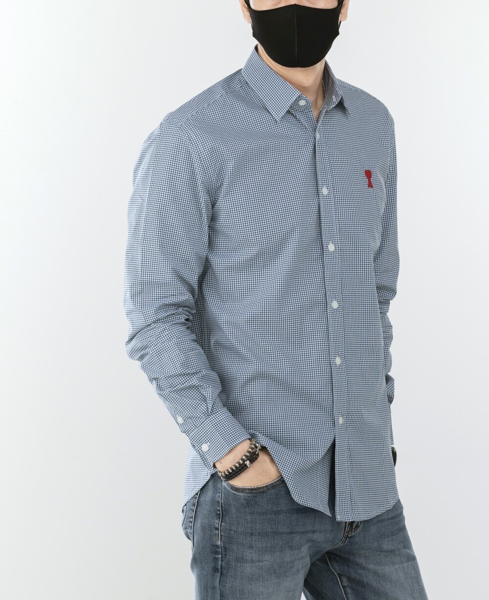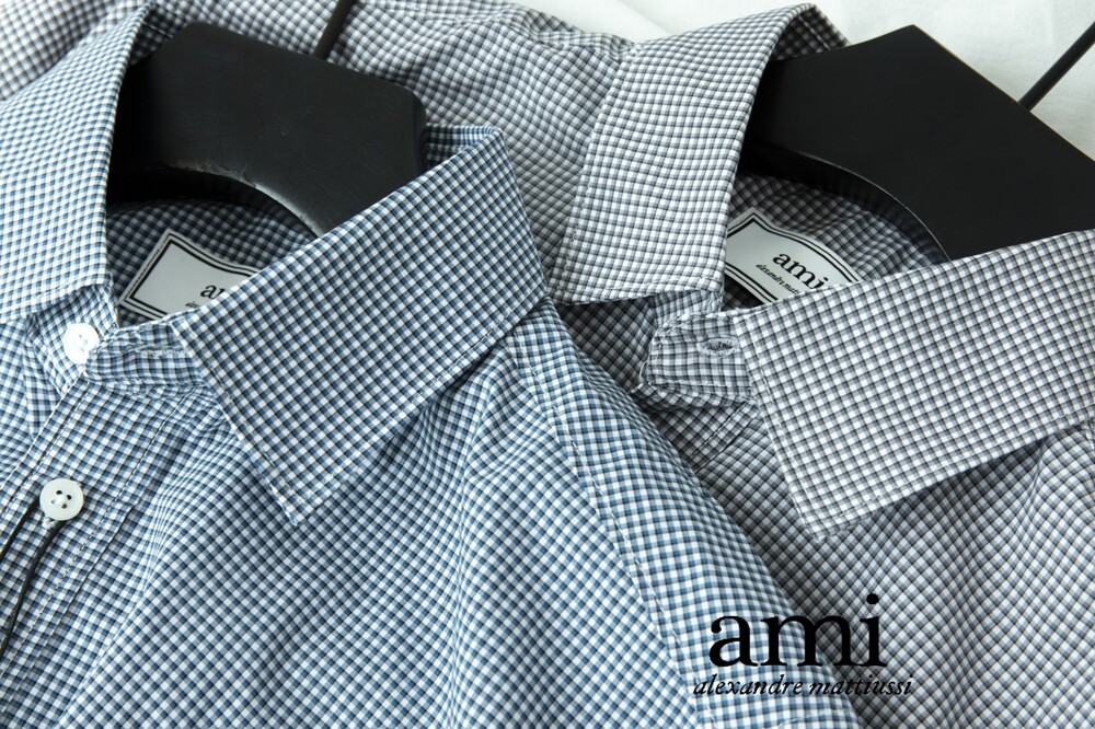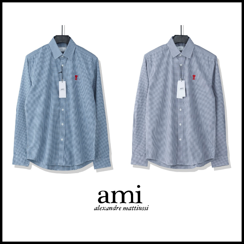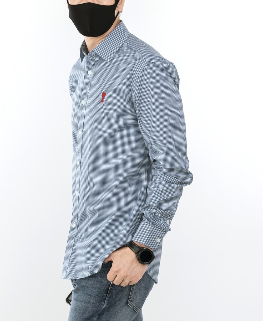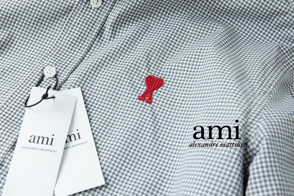 아미 스몰 하트 로고 자수 체크셔츠 남성용(2컬러)