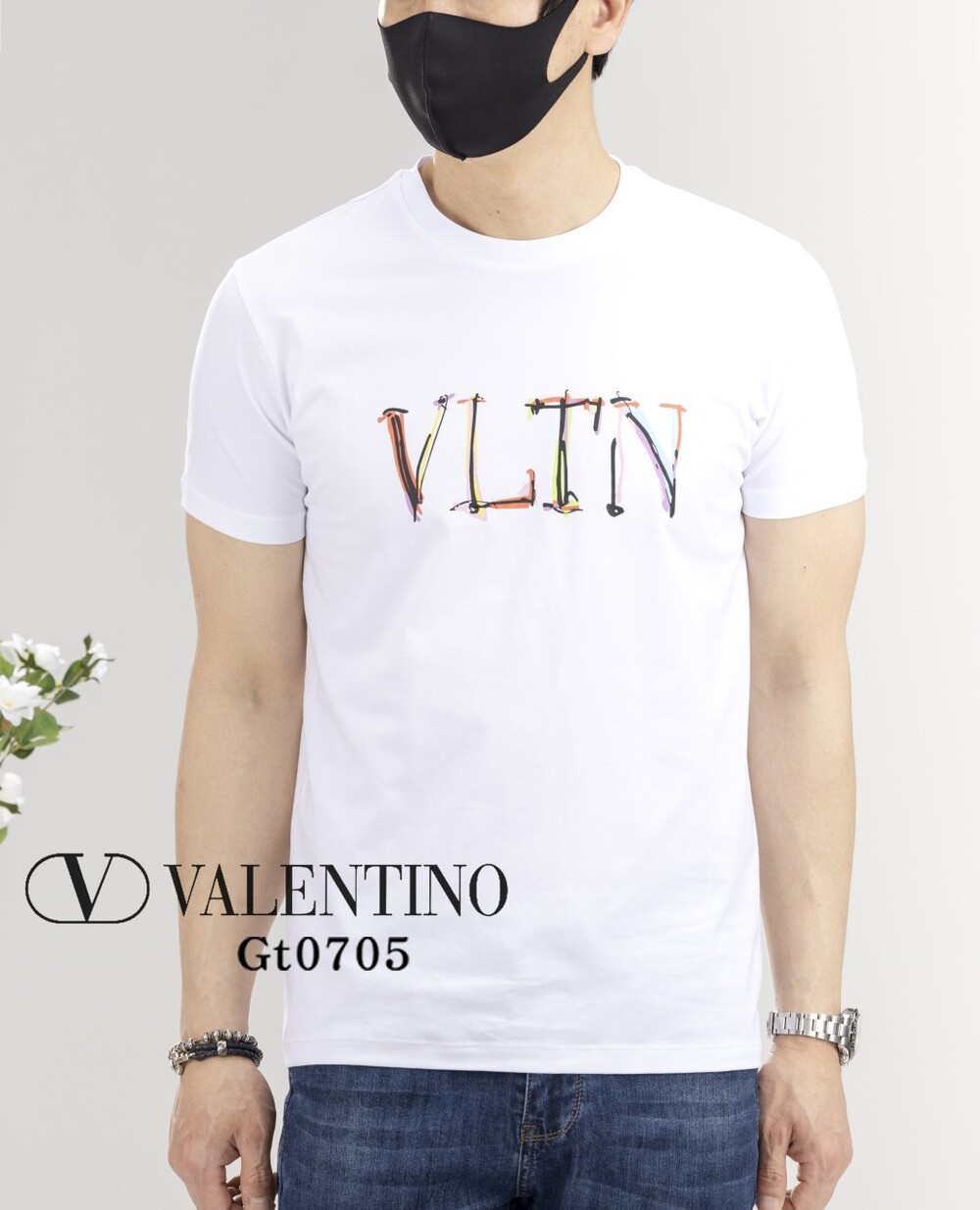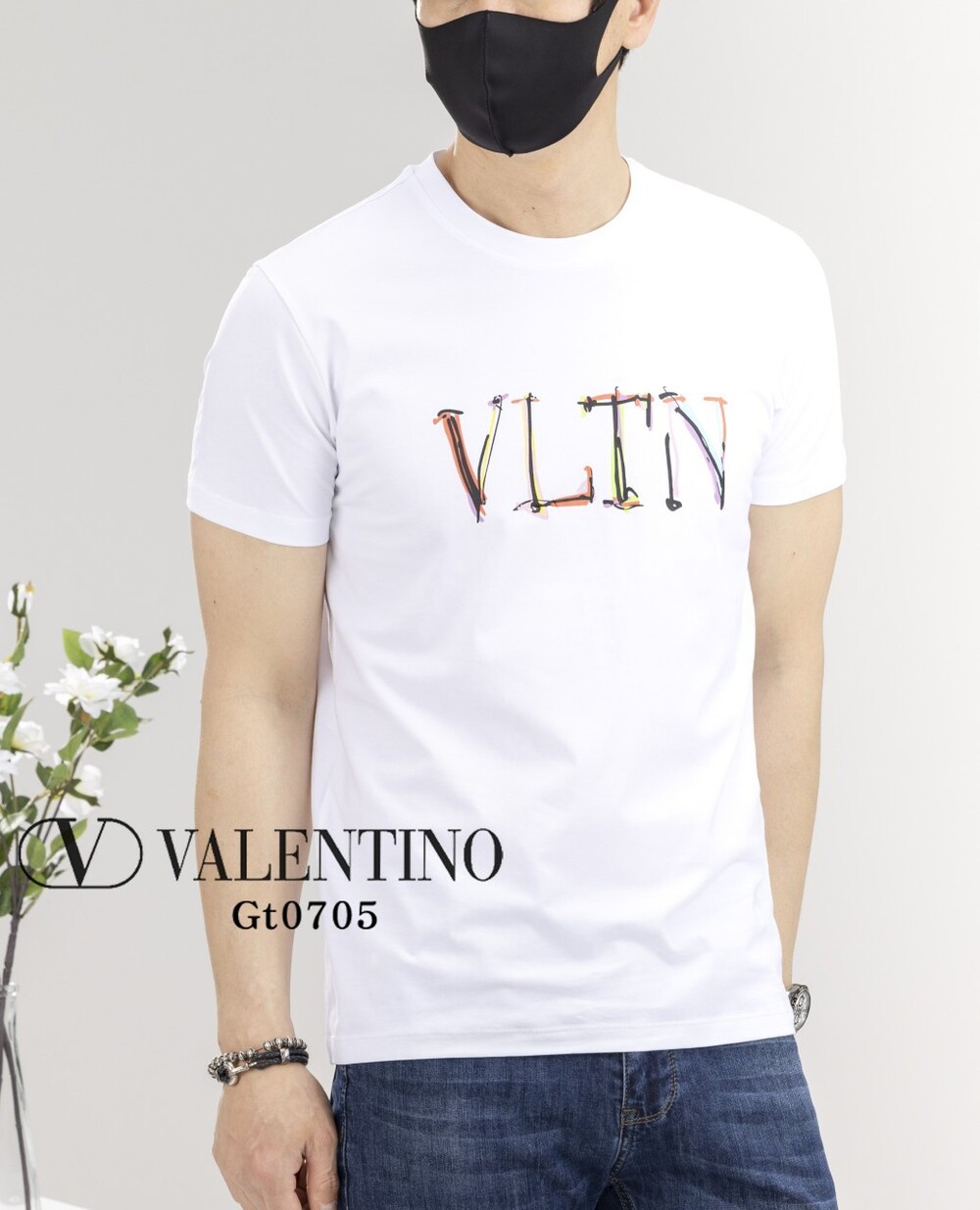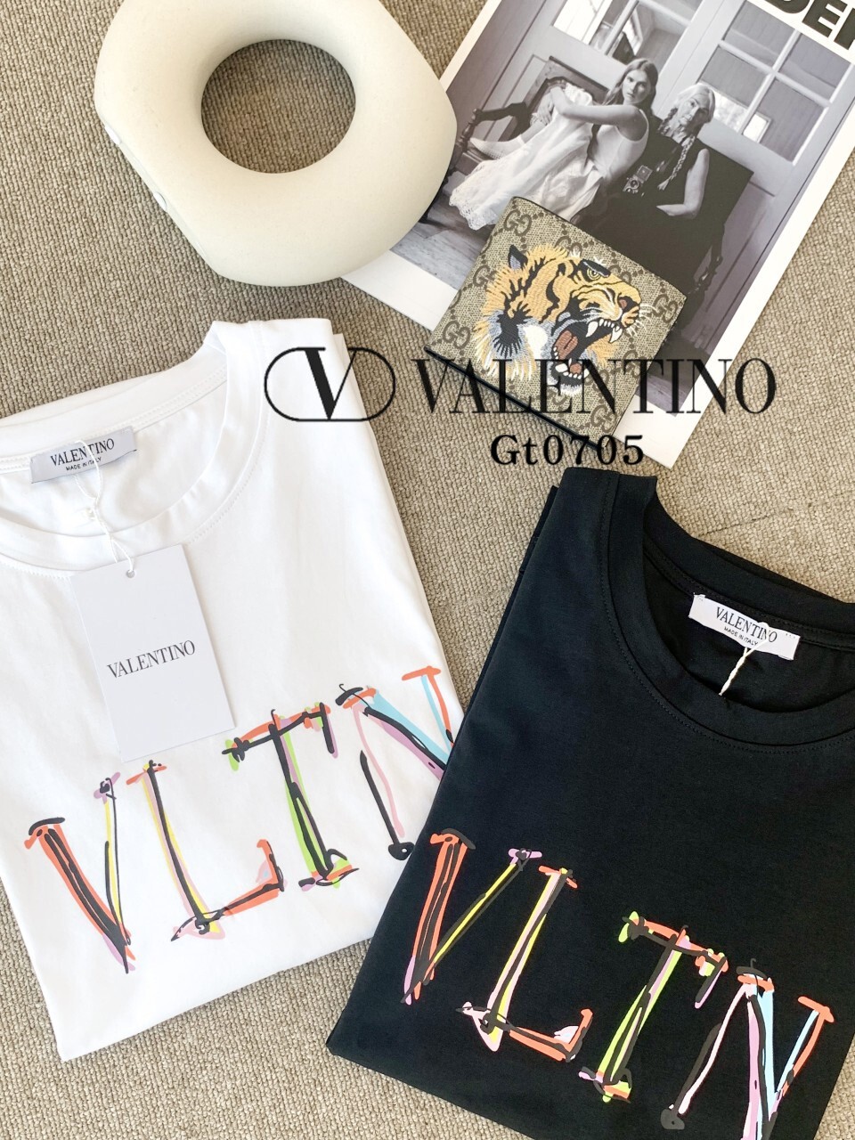 발렌티노 프리미엄 레터링 이니셜 실켓 라운드 반팔티셔츠 남여공용(2컬러) 🅱️빅사이즈