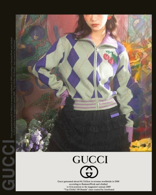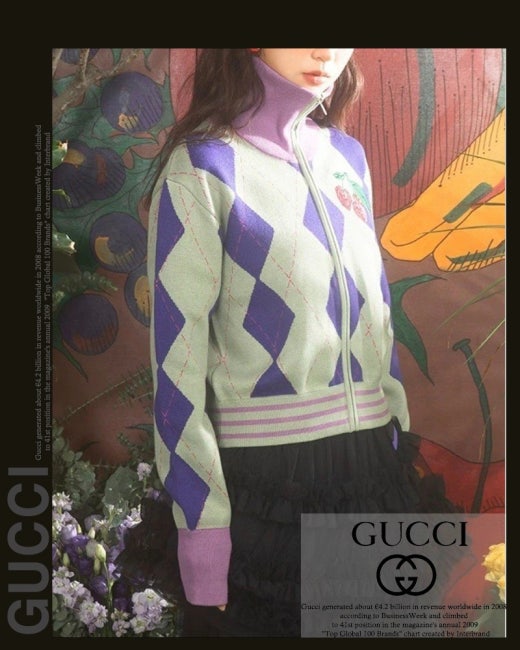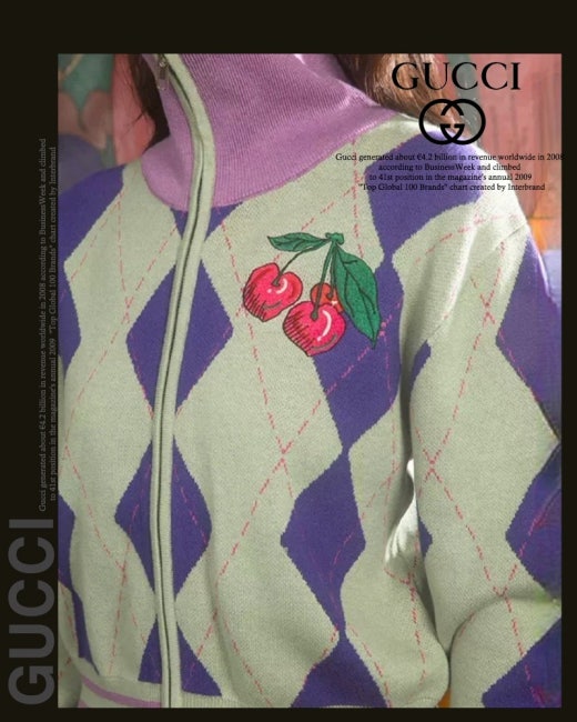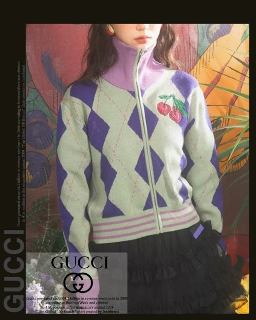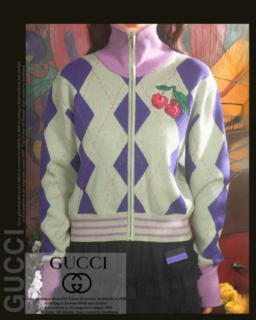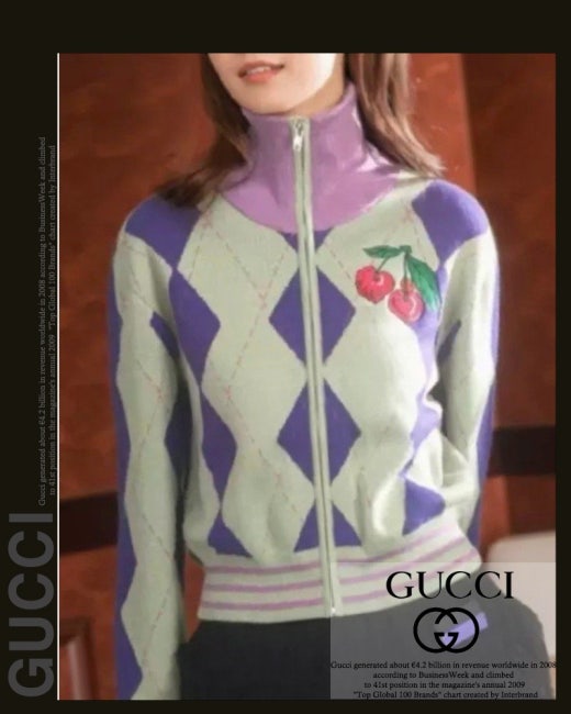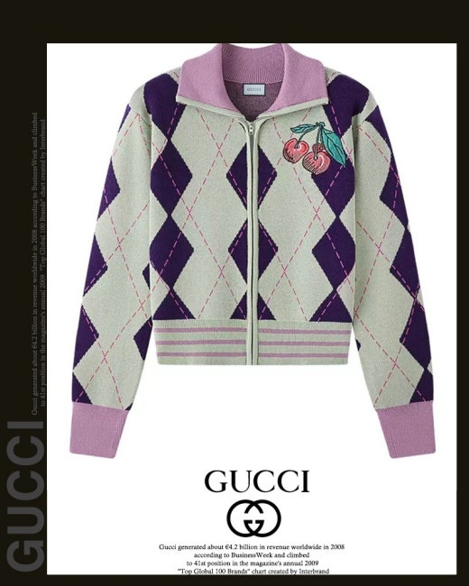 구찌 체리 아가일 집업 니트 여성용(1컬러)