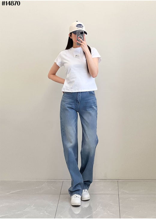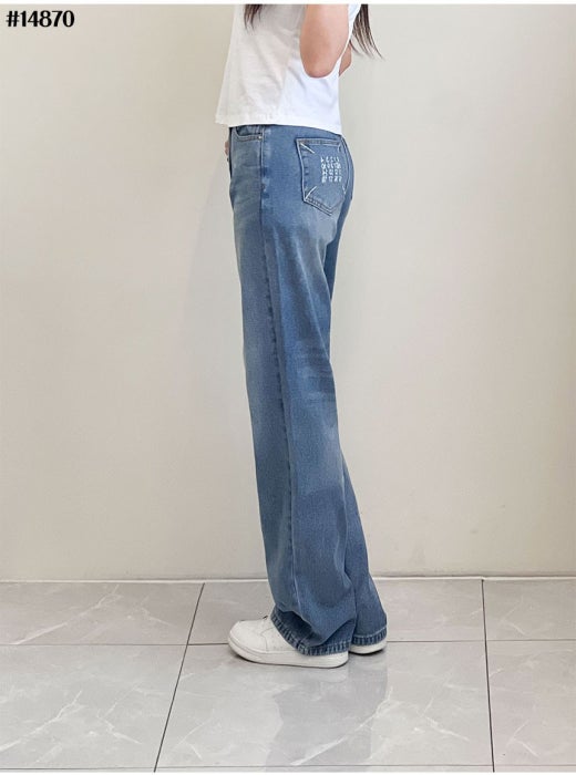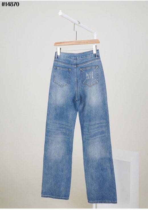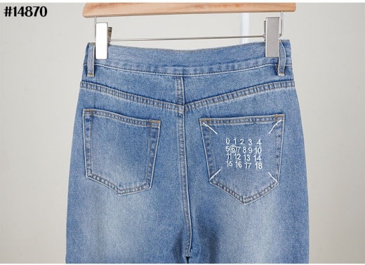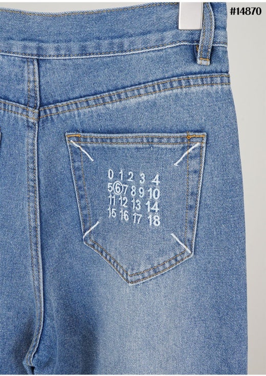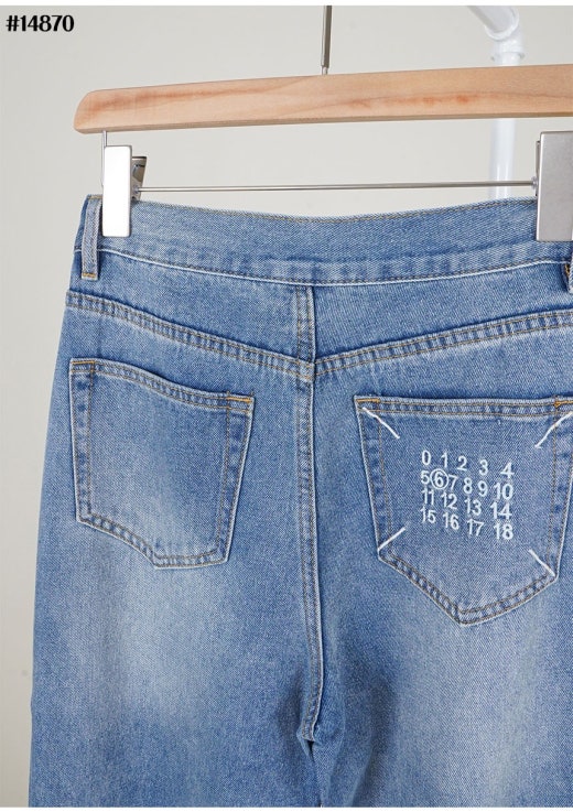 메종마르지엘라 스티치 넘버링 자수 로고 와이드 데님 팬츠 연청 여성용(1컬러)