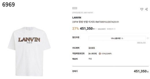 랑방 반팔티셔츠 화이트 남성용(1컬러)