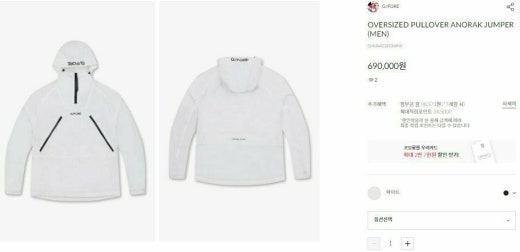 지포어 매.장.판 오버사이즈 풀오버 아노락 점퍼 화이트 남성용(1컬러)