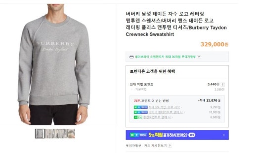 버버리 매.장.판 테이든 자수 로고 레터링 맨투맨 남여공용(2컬러)