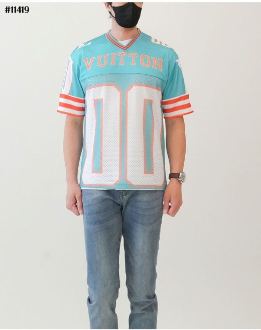 루이비통 하키 져지 브이넥 티셔츠 민트 남성용(1컬러)