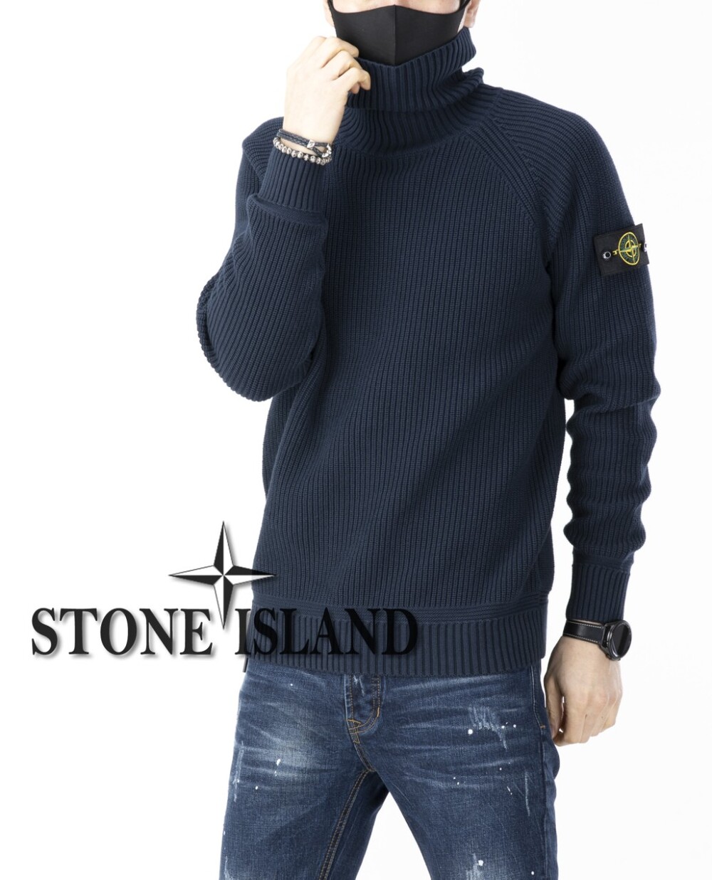 스톤아일랜드 수입고급 와플 목폴라 니트 남성용(2컬러)