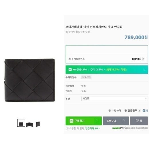 보테가베네타 와이드 위빙 반지갑 그레이 ⚓035 남성용(1컬러)