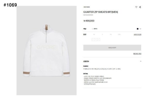 지포어 이니셜 엠보 반집업 맨투맨 남성용(2컬러) 🍀세일