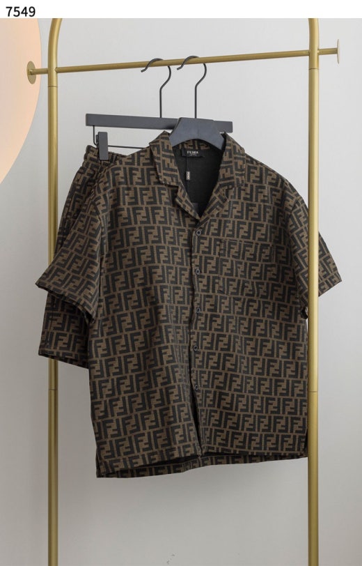펜디 FF패턴 셔츠 & 하프팬츠 세트 브라운 남성용(1컬러)