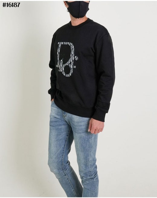 디올 자수 오블리크 로고 코튼 저지 맨투맨 티셔츠 블랙 남성용(1컬러) 🍀세일