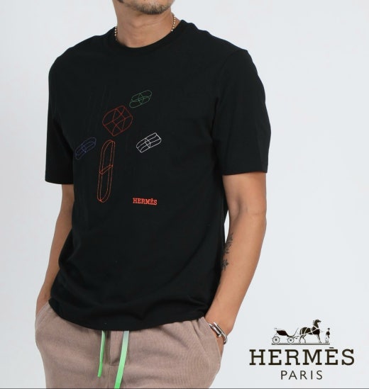 에르메스 코튼 자수 반팔티셔츠 남여공용(2컬러) 🅱️빅사이즈 📢세일