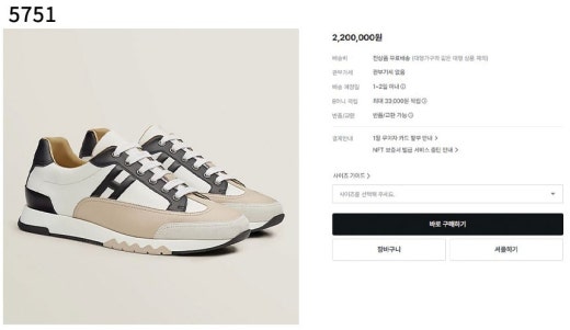 에르메스 트레일 스니커즈 베이지 남성용(1컬러)