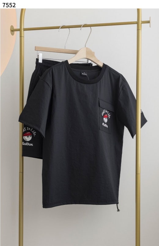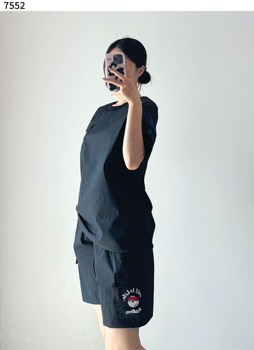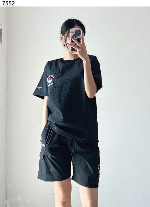 말본 포켓 나일론 반팔 & 반바지 세트 블랙 남여공용(1컬러)
