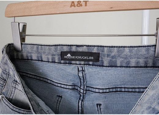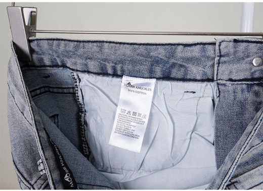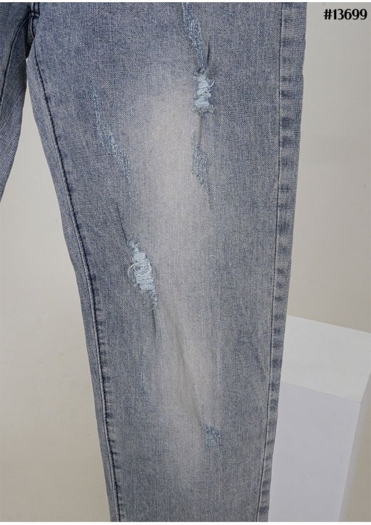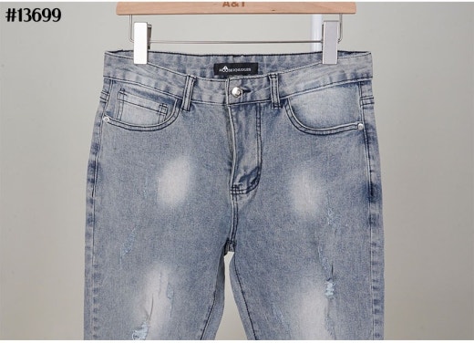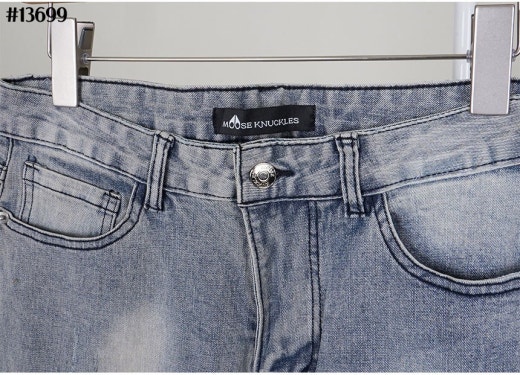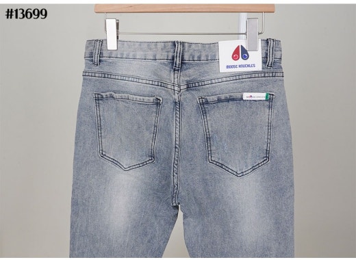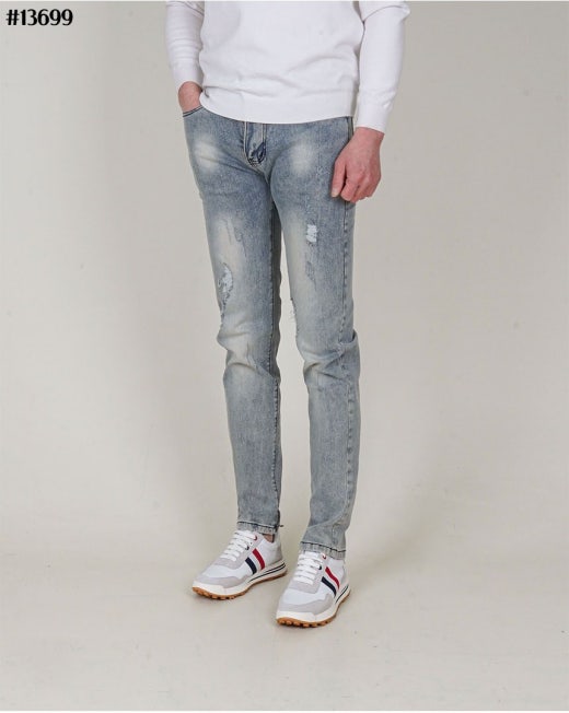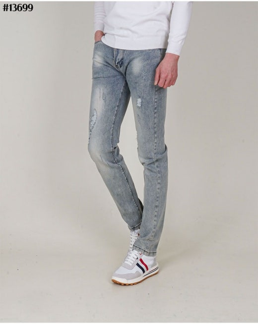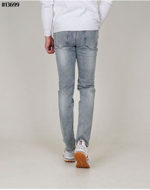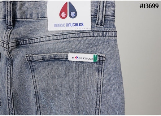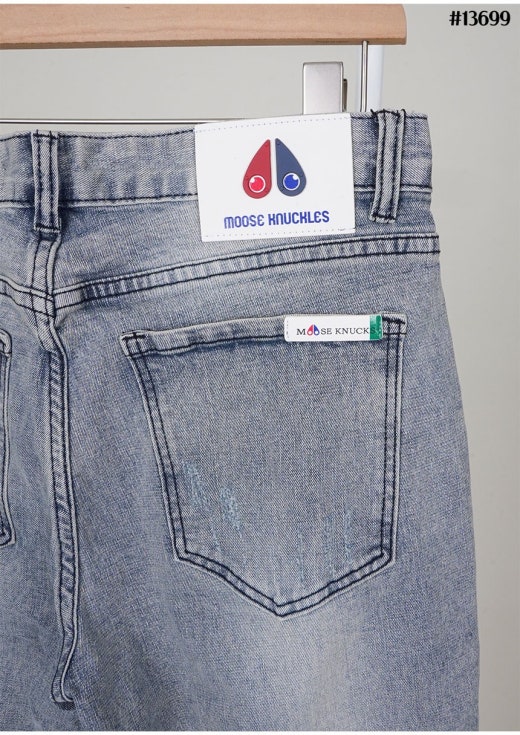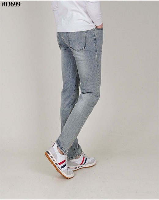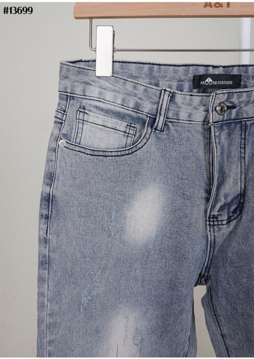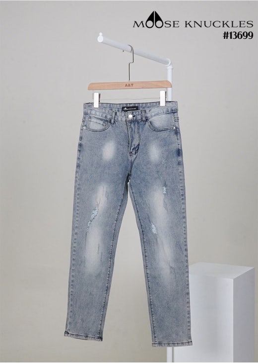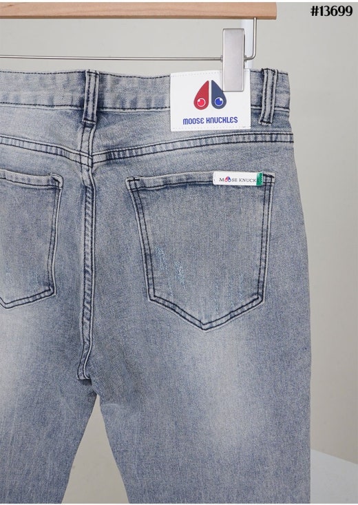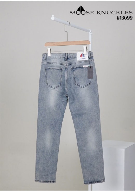 무스너클 화이트 로고 패치 빈티지 워싱 슬림핏 데님 팬츠 연청 남성용(1컬러)