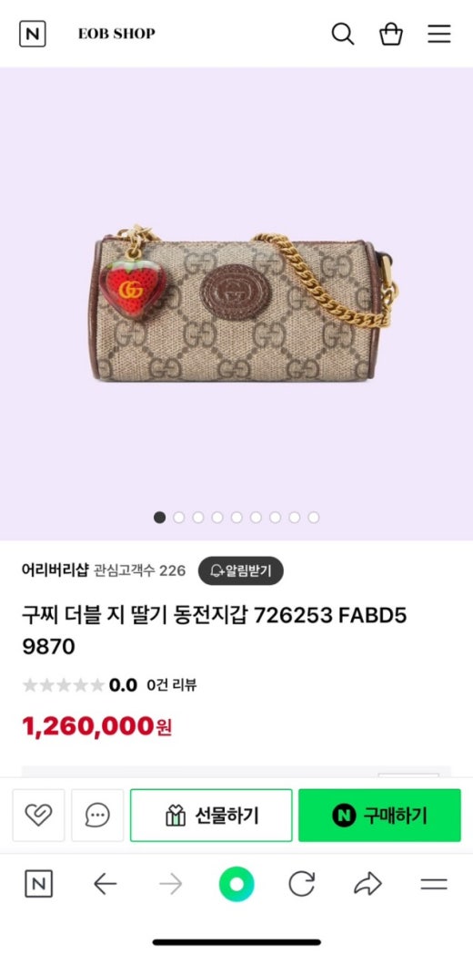 구찌 GG 딸기 동전 지갑 베이지 여성용(1컬러)