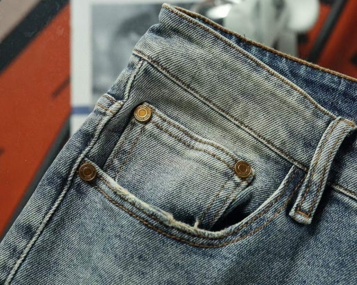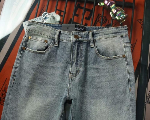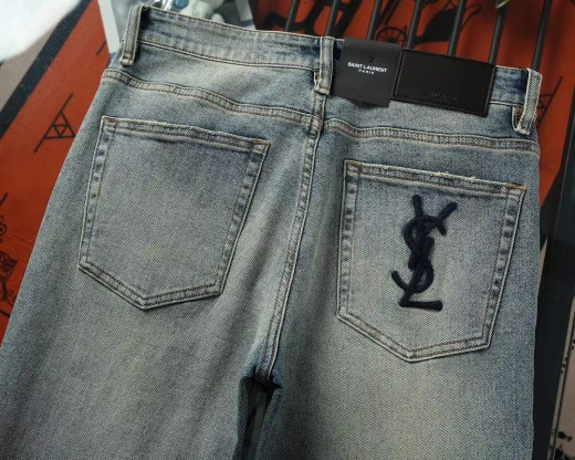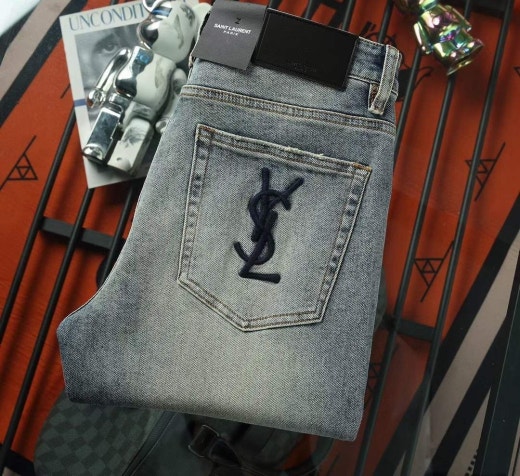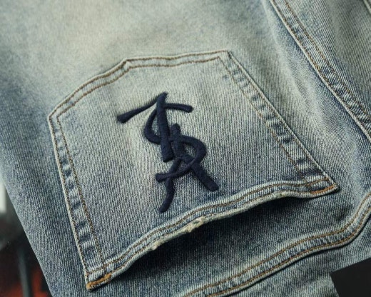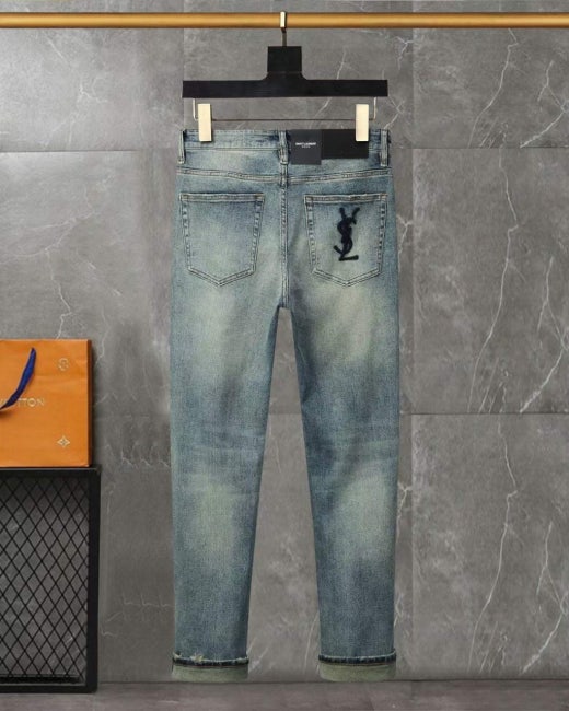 생로랑 포켓 자수로고 스판 워싱데님진 연청 남성용(1컬러)
