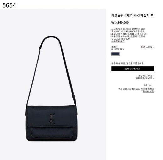 생로랑 에코닐 NIKI 메신저 백 블랙 남여공용(1컬러)