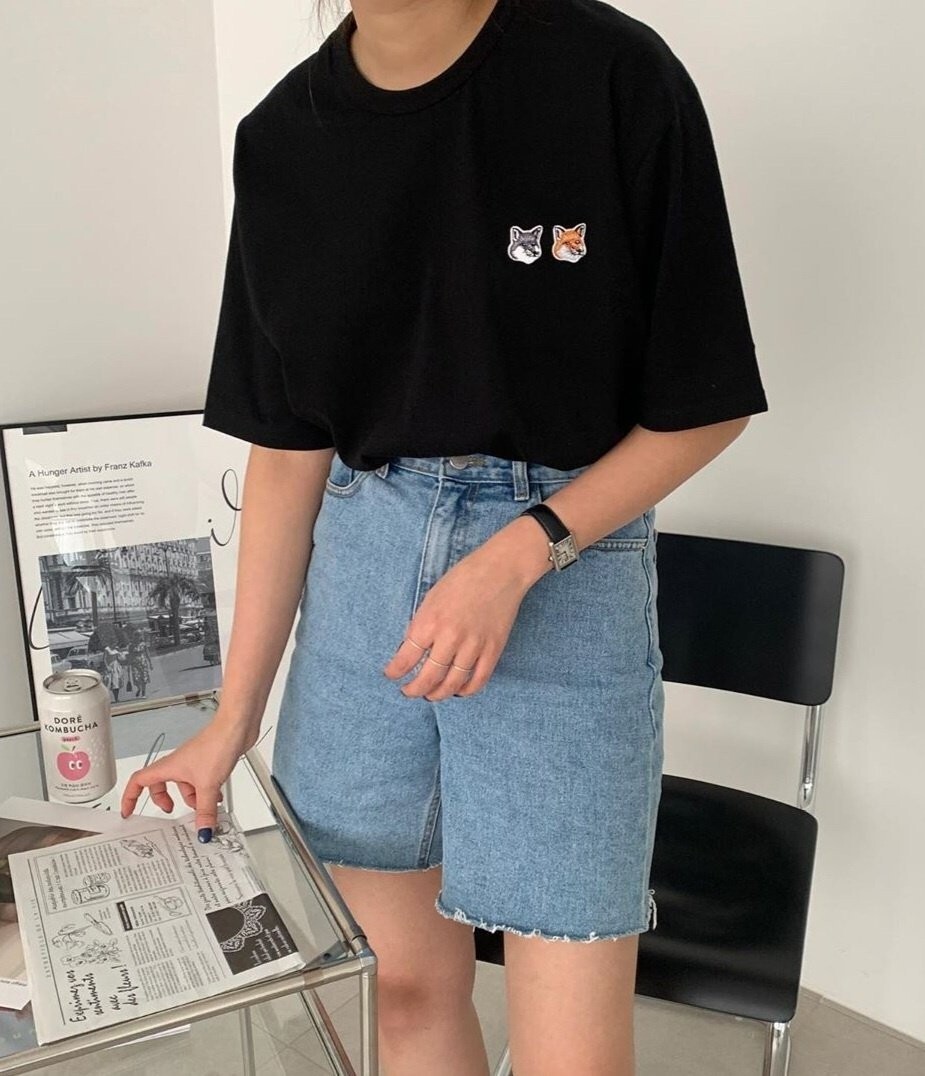메종키츠네 더블헤드 패치 라운드 반팔티셔츠 남여공용(2컬러)
