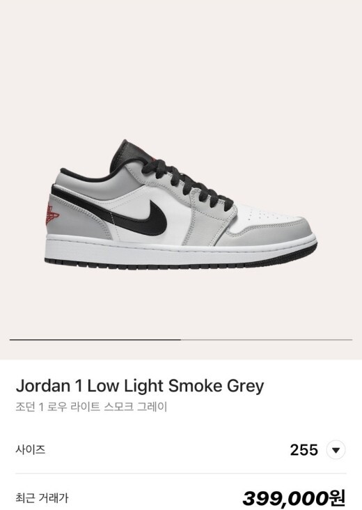 나이키 조던 1 로우 라이트 스모크 그레이 남여공용(1컬러)