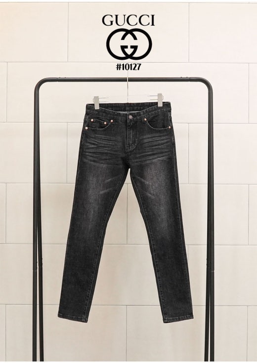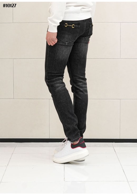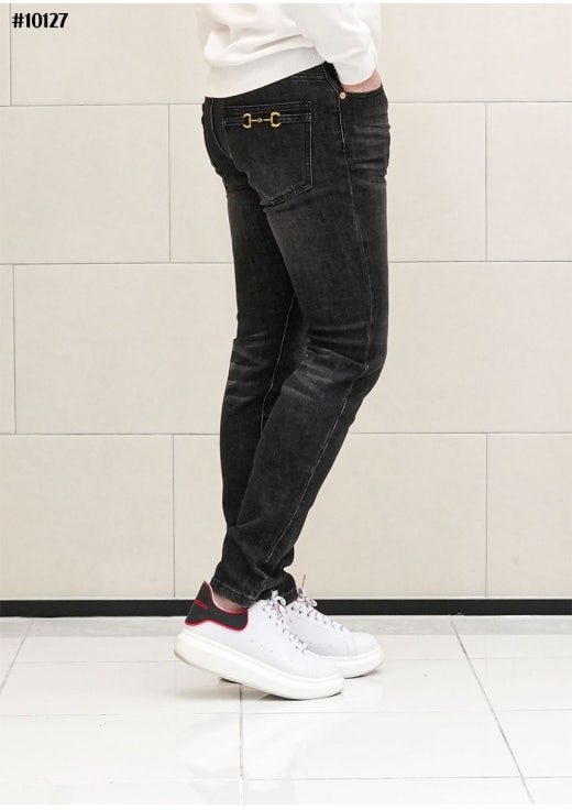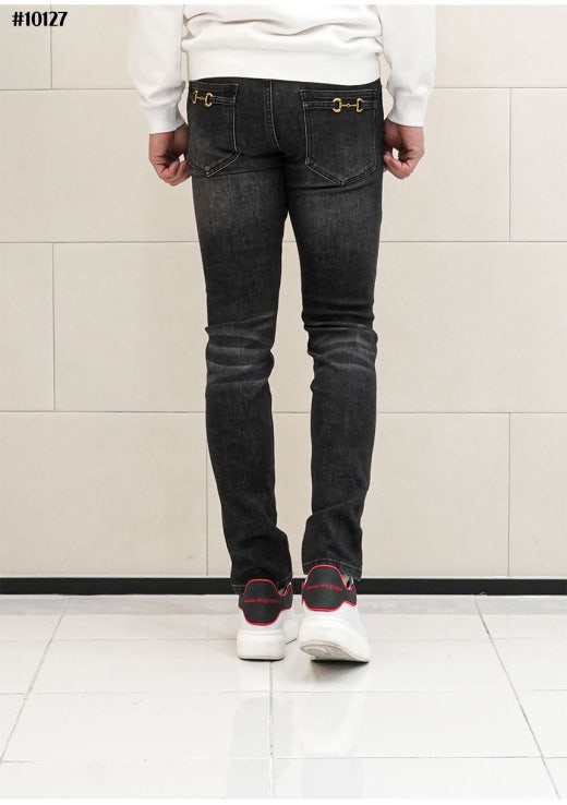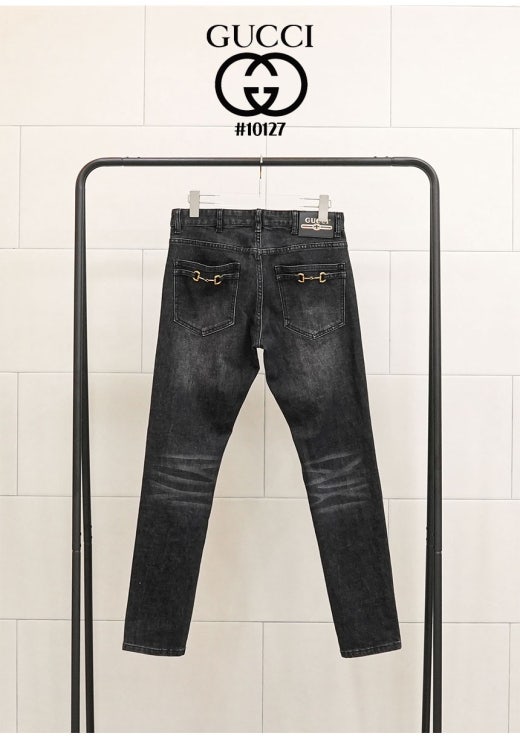 구찌 홀스빗 레더패치 블랙 워싱 데님 팬츠 남성용(1컬러)
