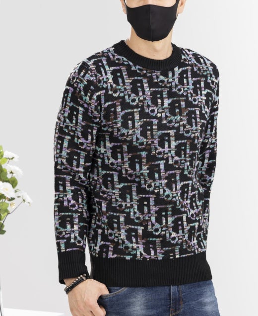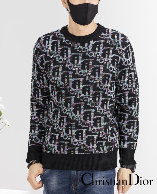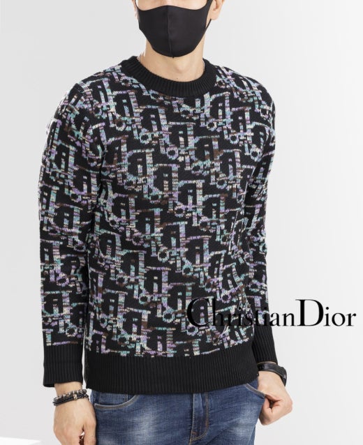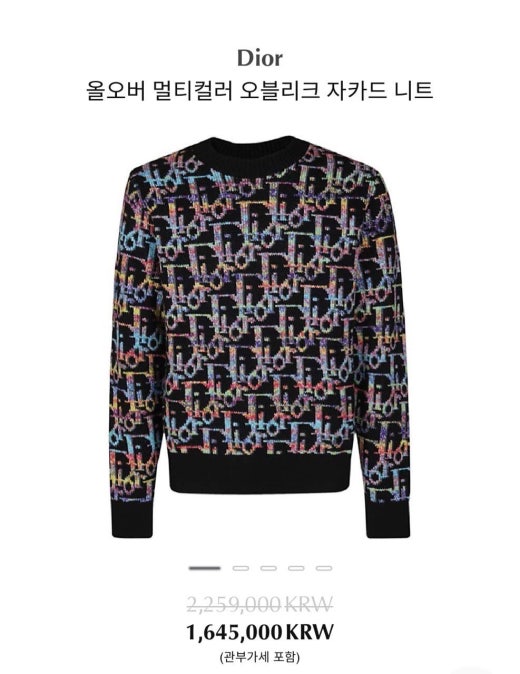 디올 울오버 멀티컬러 오블리크 자카드 니트 멀티블랙 남여공용(1컬러) 🍀세일