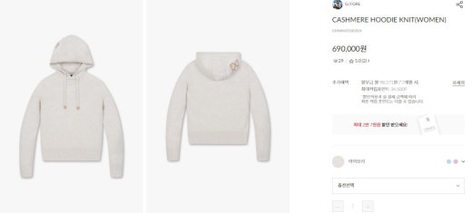 지포어 매.장.판 캐시미어 후드 니트 아이보리 여성용(1컬러)