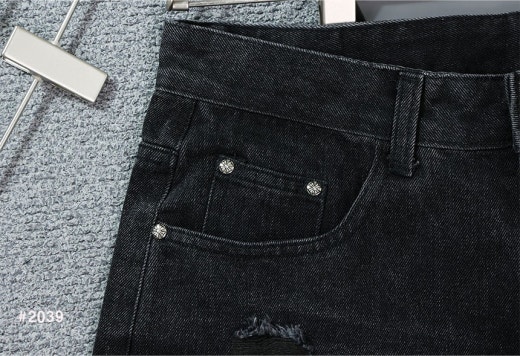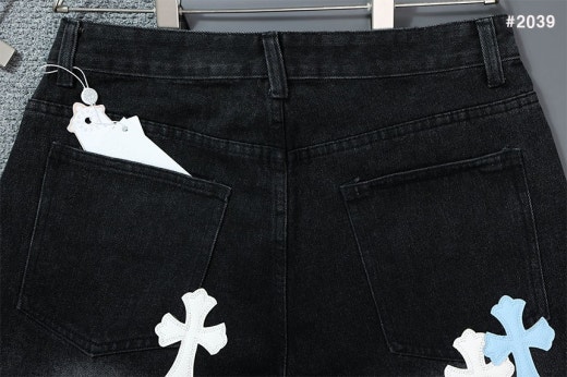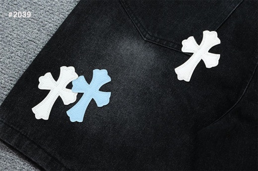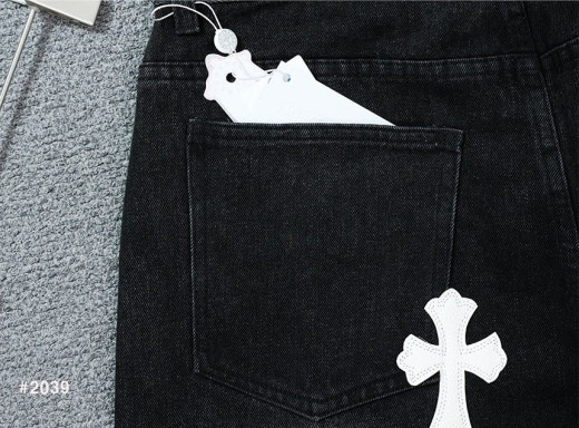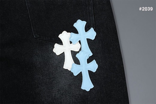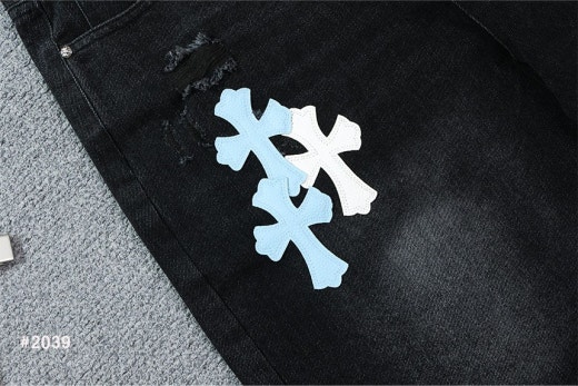 크롬하츠 세메터리 레더 패치 워싱 데님 팬츠 블랙 남성용(1컬러)