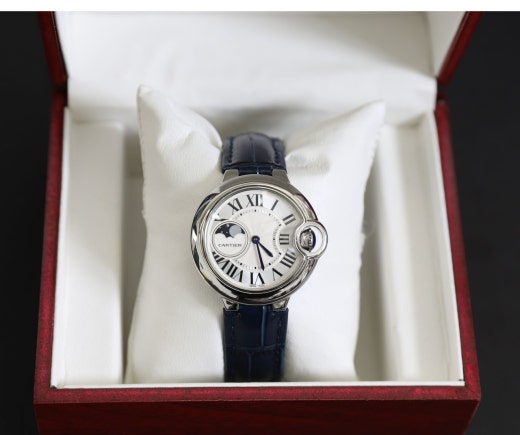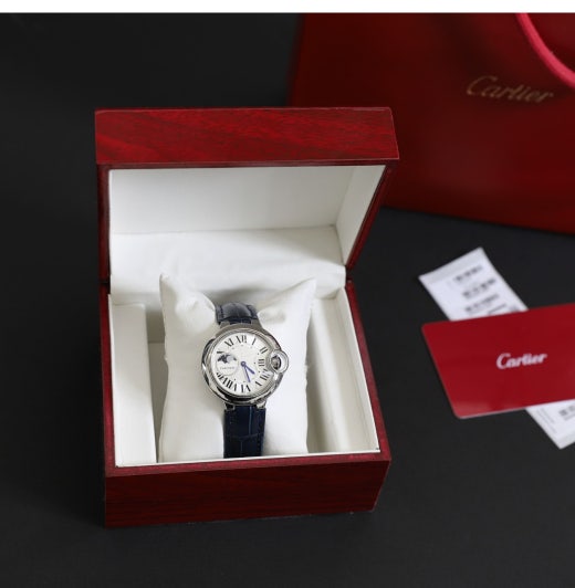 까르띠에 발롱블루 드 워치 문페이스 가죽 카프스킨 블루28 여성용(1컬러)