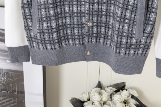 톰브라운 메탈버튼 체크배색 자켓 그레이 남여공용(2컬러)