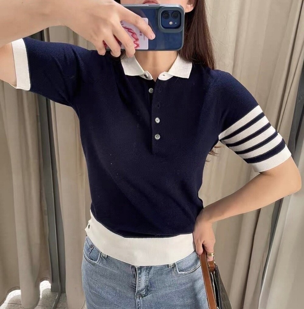톰브라운 카라배색 니트카라 반팔티셔츠 여성용(3컬러)