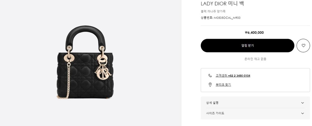 디올 LADY DIOR 미니 백 블랙 여성용(1컬러)