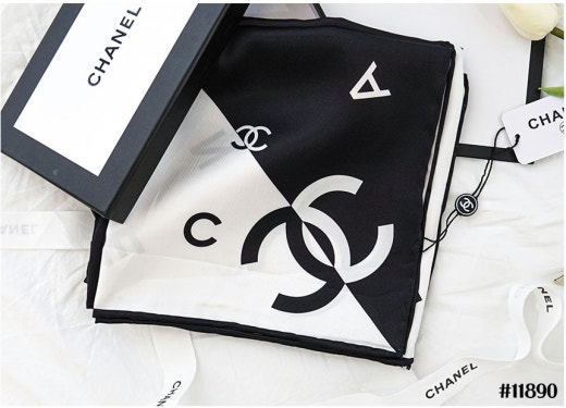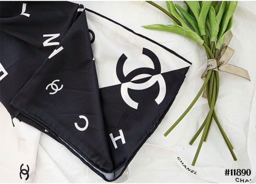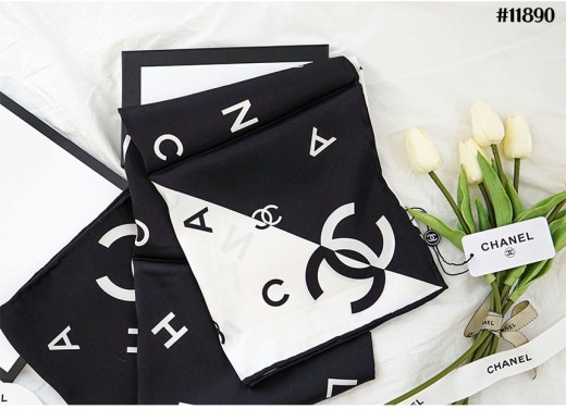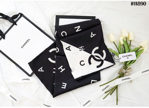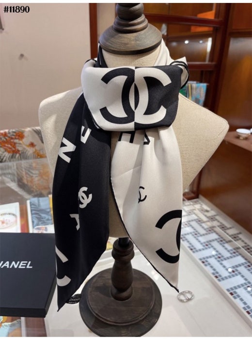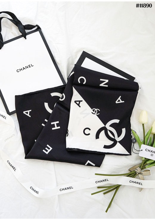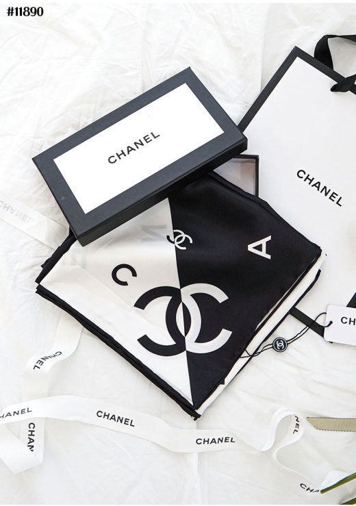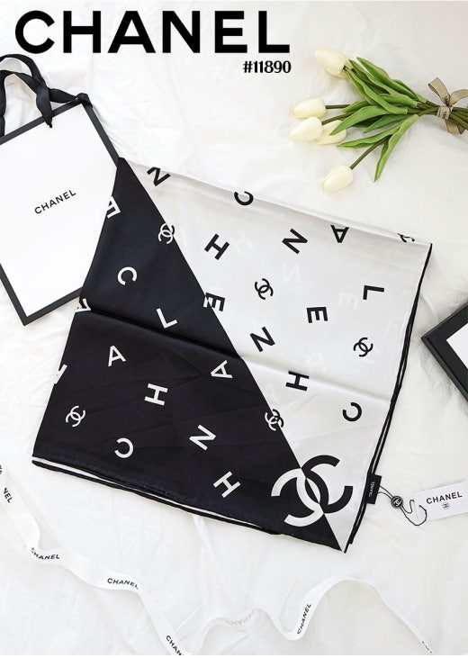 샤넬 블랙화이트 콤비 스퀘어 스카프 여성용(1컬러)