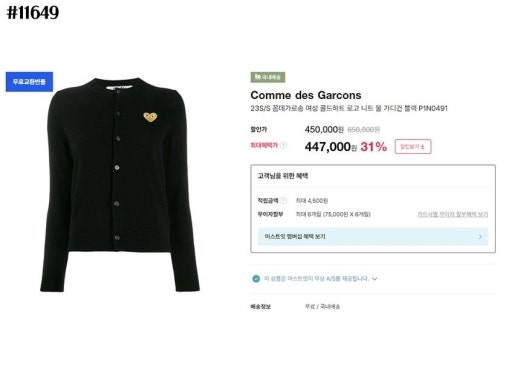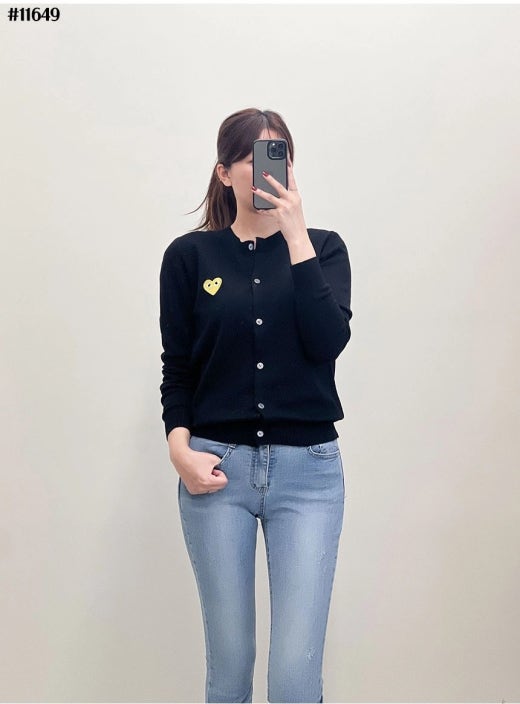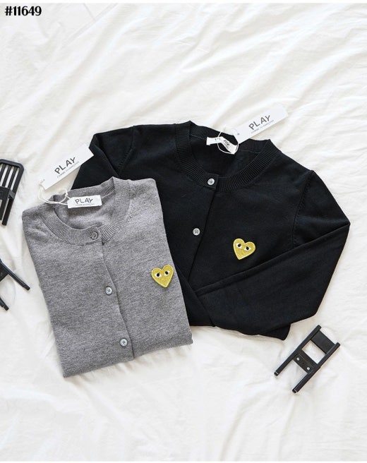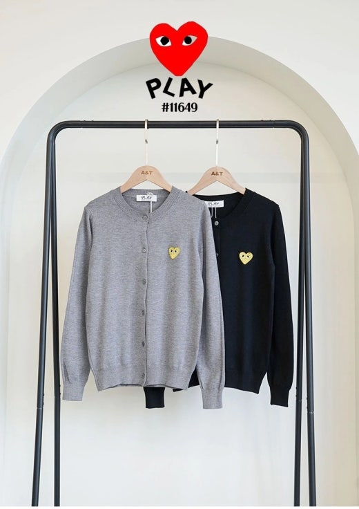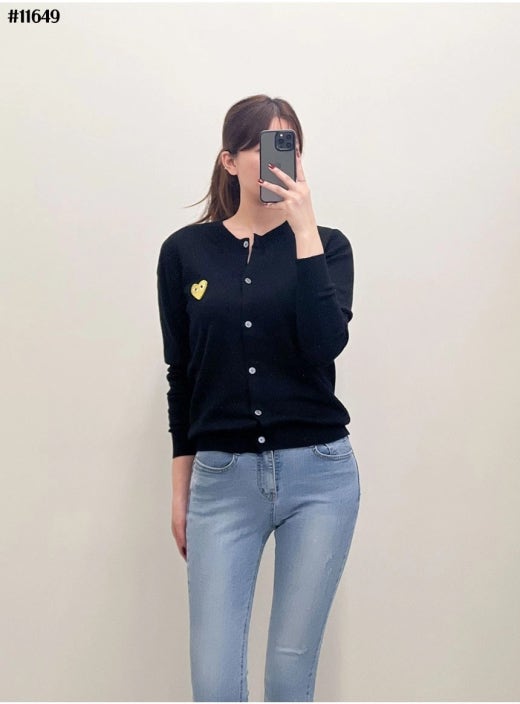 꼼데가르송 골드하트 로고 라운드 니트 가디건 여성용(2컬러)