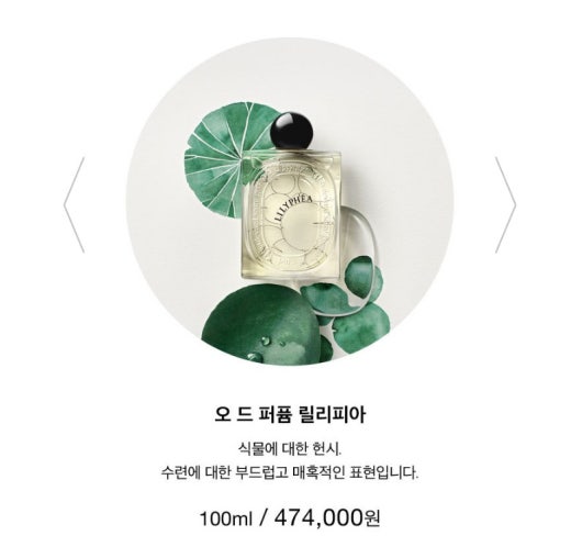 【소 재】 딥티크의 '레 제썽스 드 딥티크(Les Essences de Diptyque)' 컬렉션 중 하나인 '릴리피아(Lilyphéa)' 오 드 퍼퓸은 수련(水蓮)에서 영감을 받아 탄생한 향수입니다.