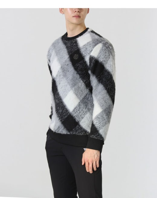 지포어 다이아몬드 체크패턴 윈드로트 체크 방풍 스웨터 블랙 남성용(1컬러)