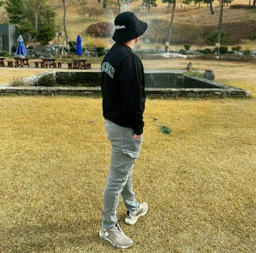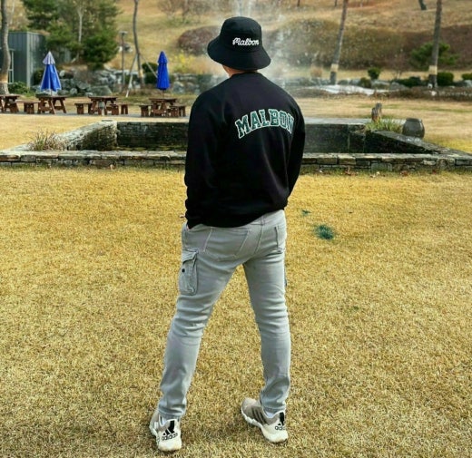 ➡️ 가슴의 버킷 로고와 등판과 소매의 말본 레터링으로 포인트를 더한 베이직한 아이템.