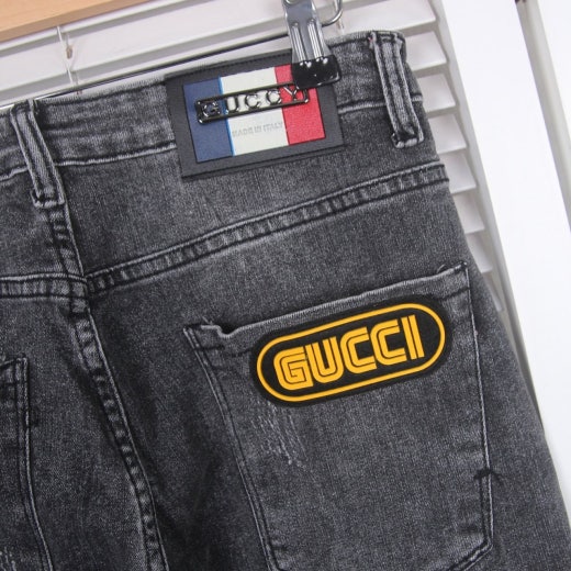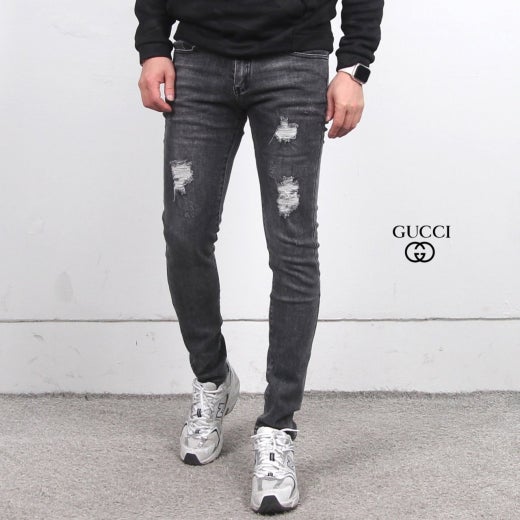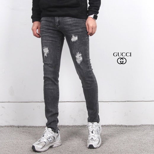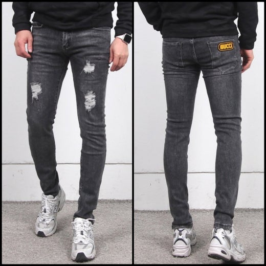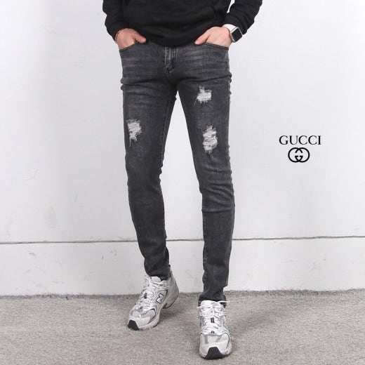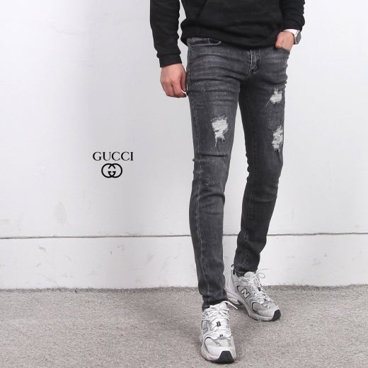 구찌 워싱 디스트로이드 스판 진 흑청 남성용(1컬러)