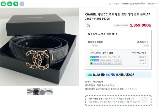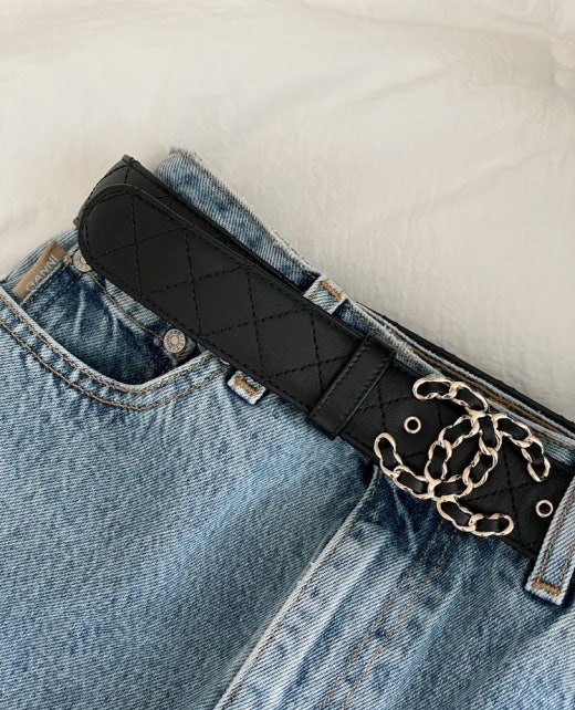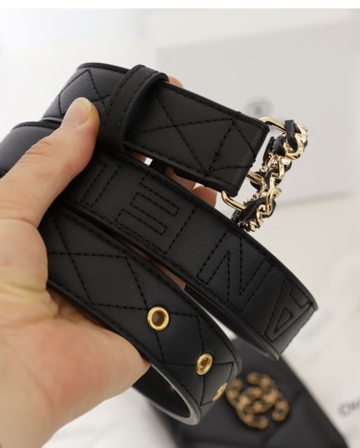 샤넬 CC로고 체인 퀕팅 레더벨트 블랙금장 여성용(1컬러)