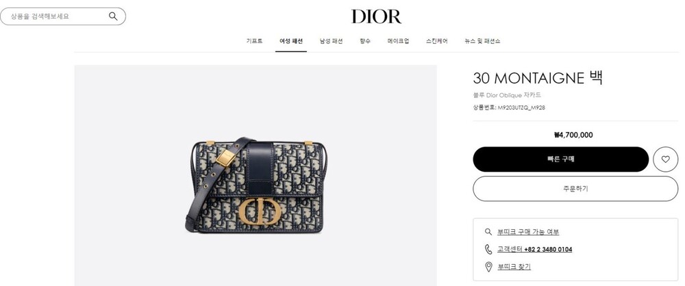 디올 30 몽테인 백 블루 오블리크 자카드 여성용(1컬러)