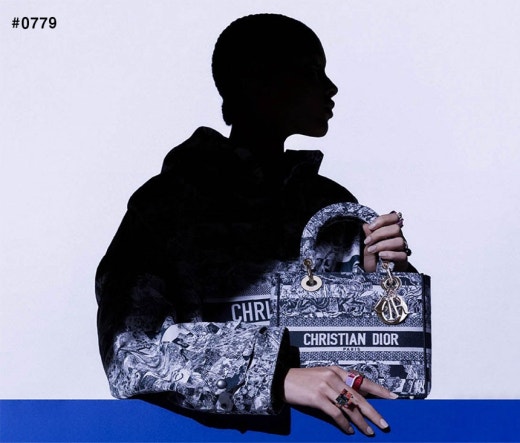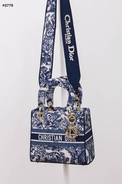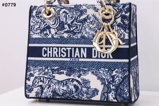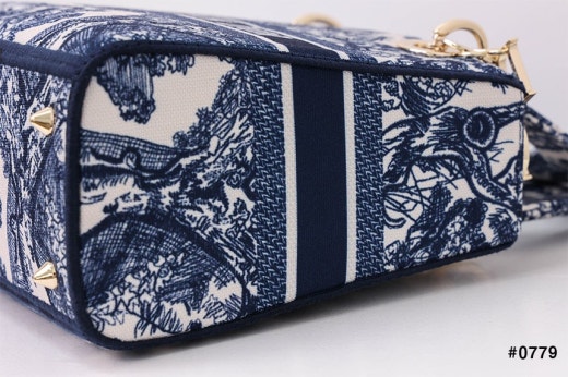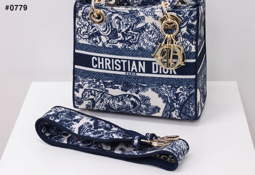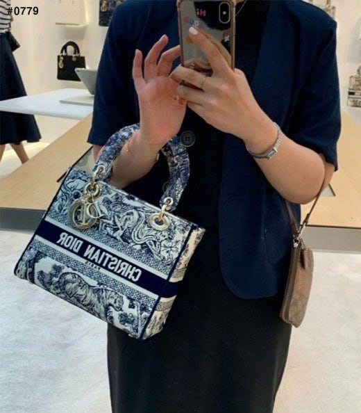 디올 레이디 D-Lite 미디엄 탑 핸들백 네이비 여성용(1컬러)