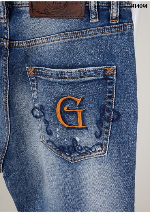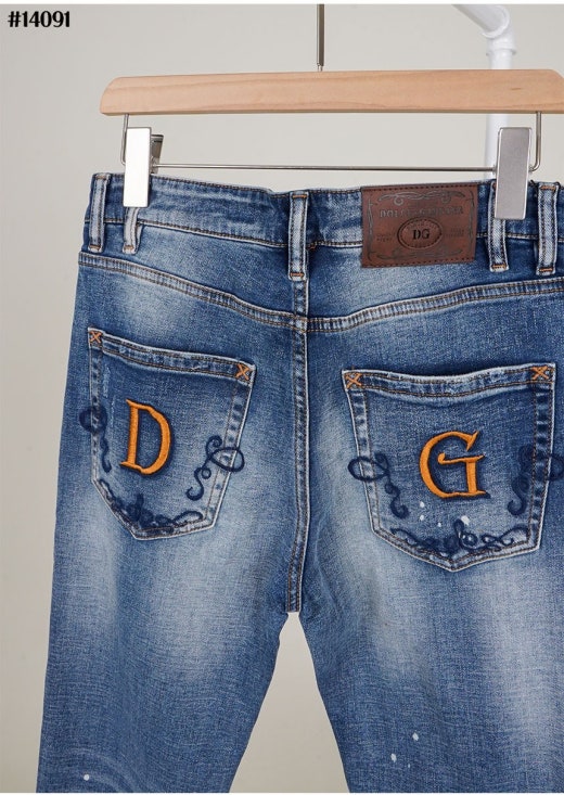 돌체앤가바나 포켓 DG 자수 로고 페인팅 슬림핏 데님 팬츠 중청 남성용(1컬러)