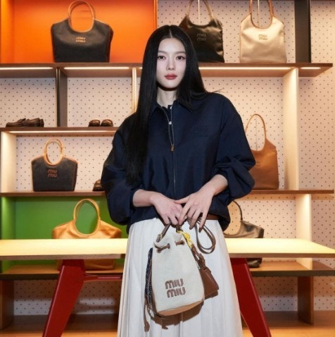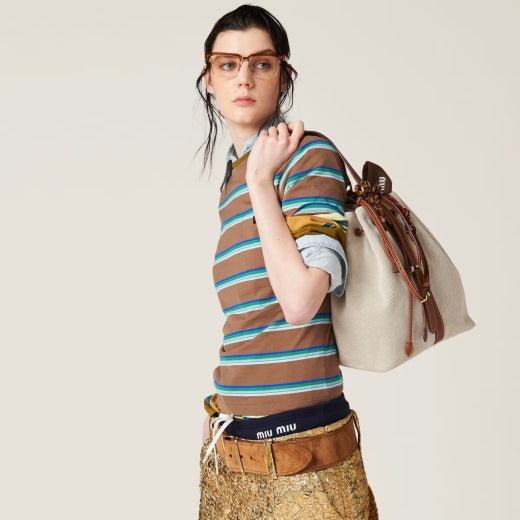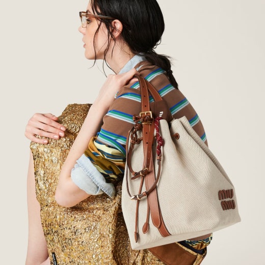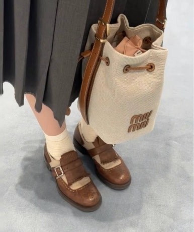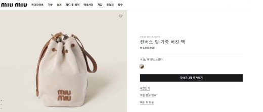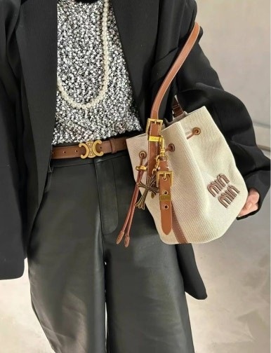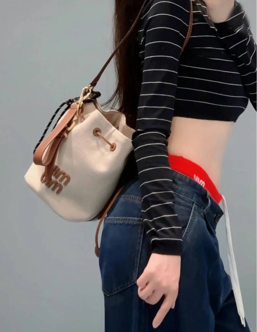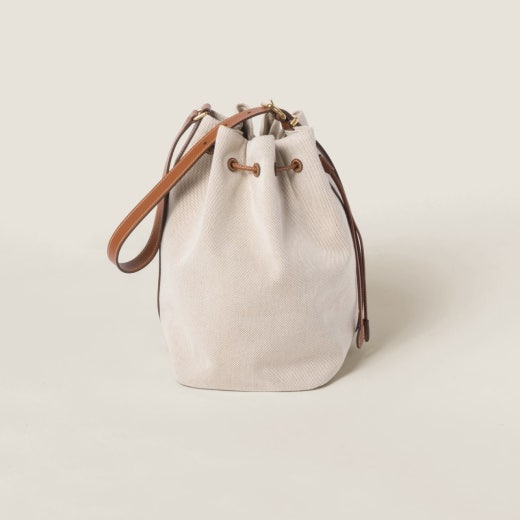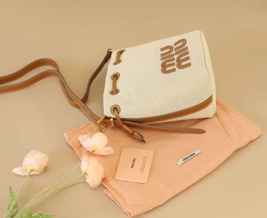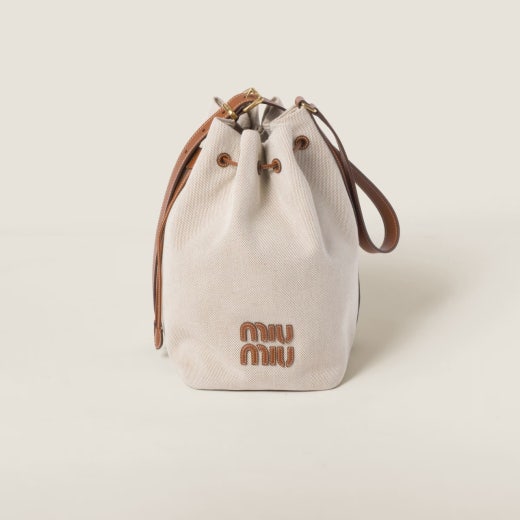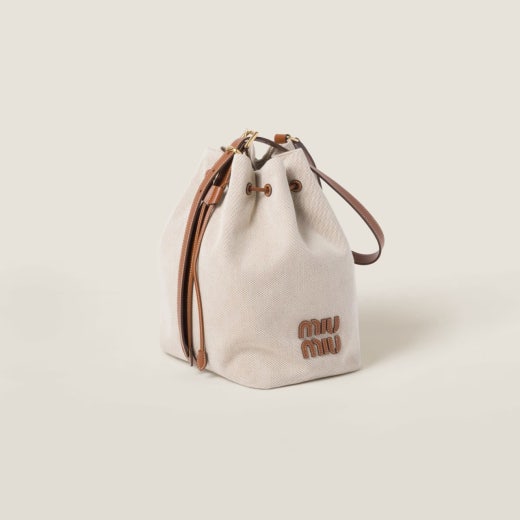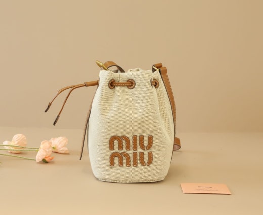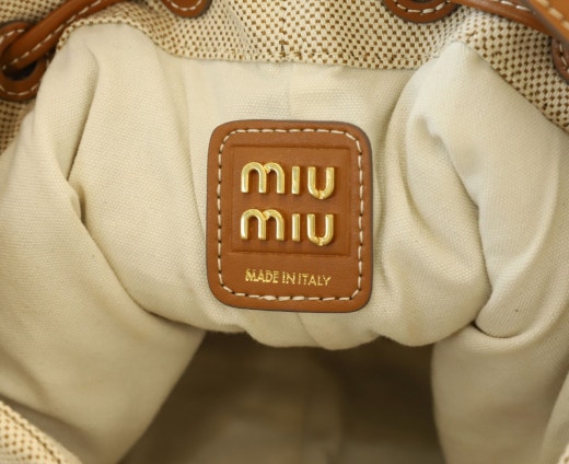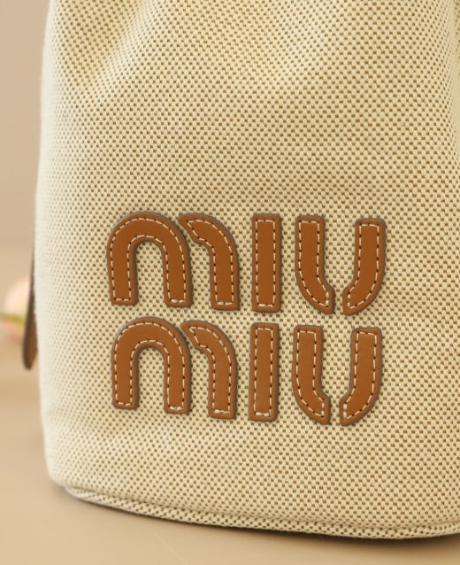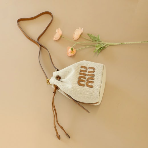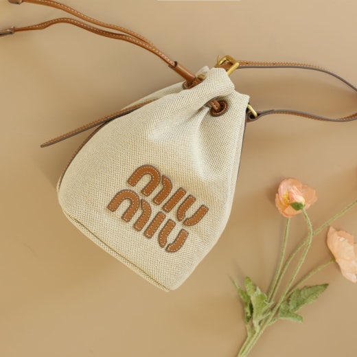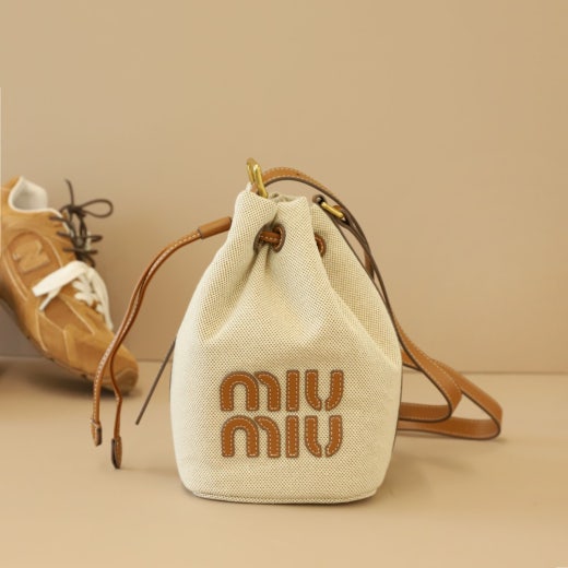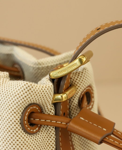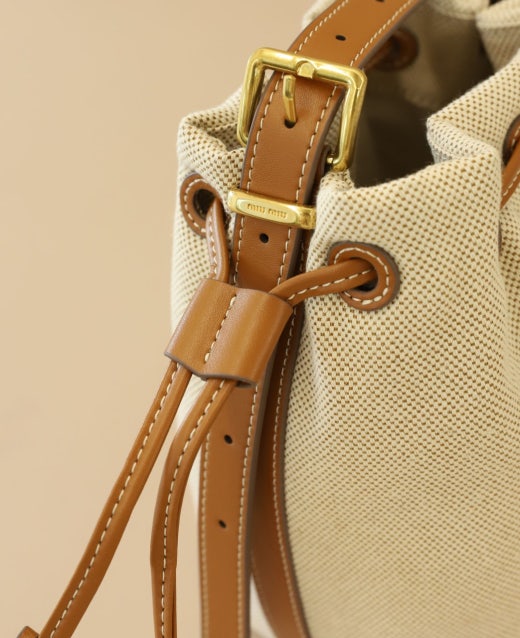 미우미우 캔버스 및 가죽 버킷백 베이지/브랜디 여성용(1컬러)