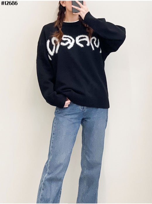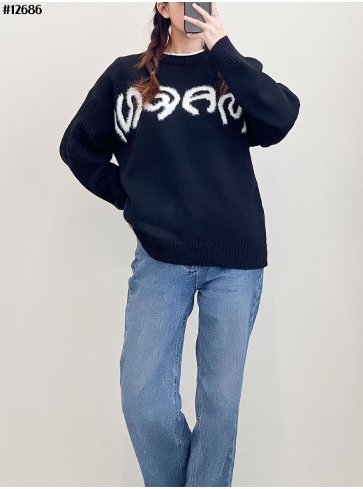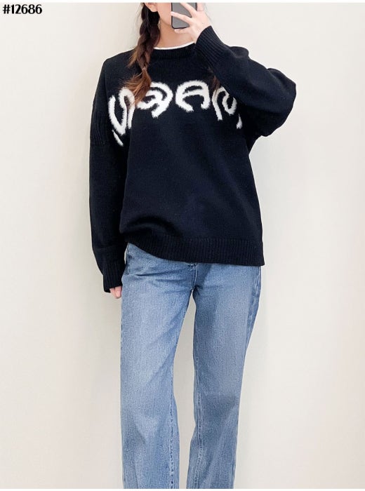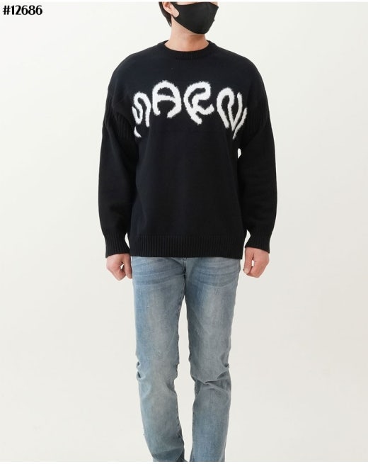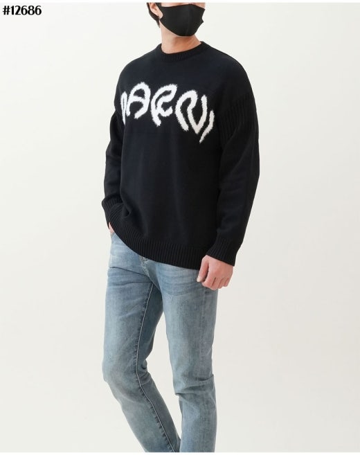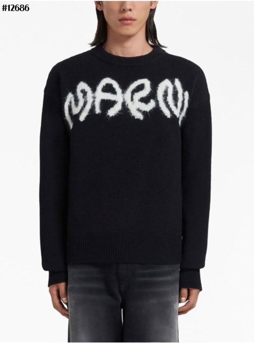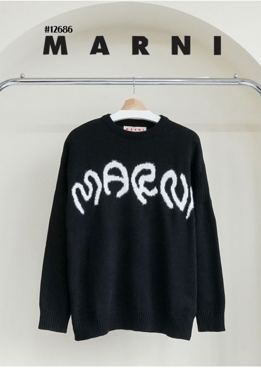 마르니 인타르시아 레터링 로고 자카드 니트 스웨터 블랙 남여공용(1컬러)