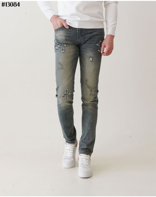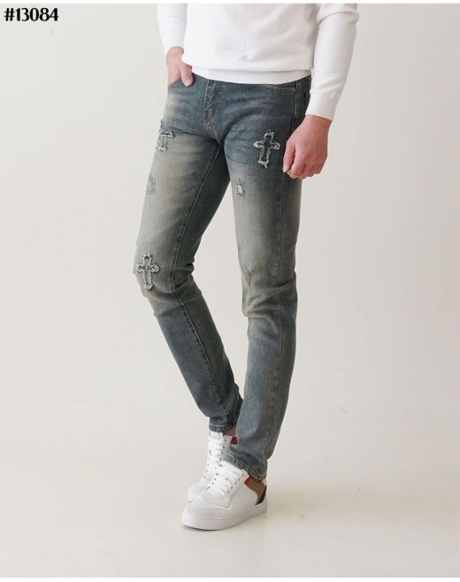 크롬하츠 빈티지 십자 워싱 슬림핏 데님 팬츠 중청 남성용(1컬러)