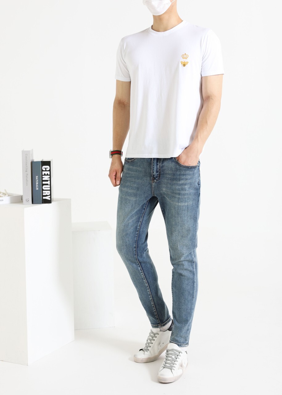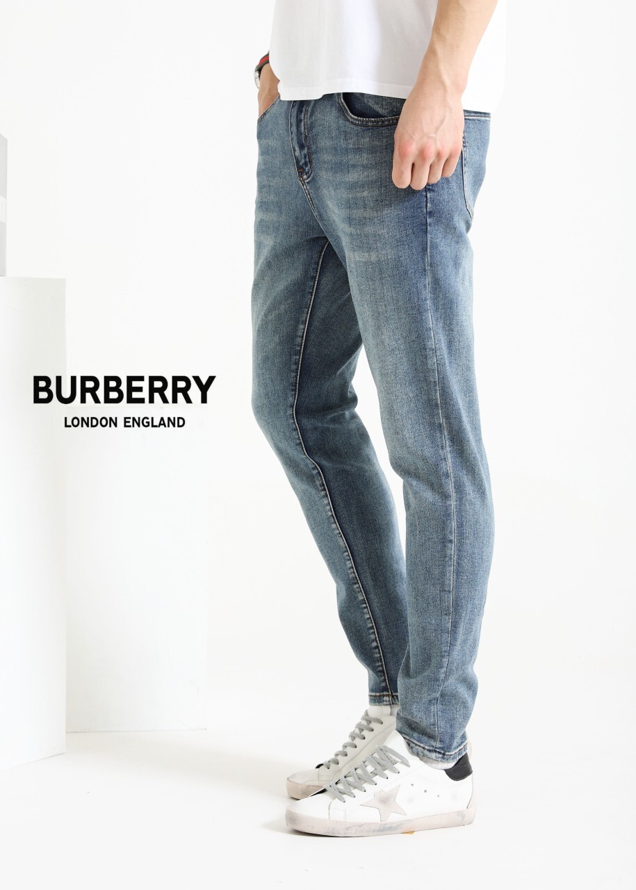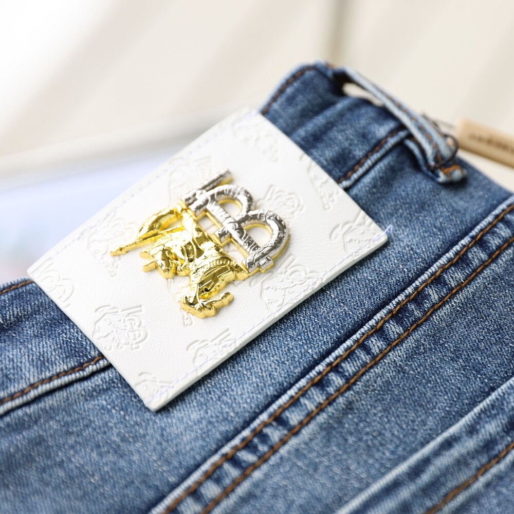 버버리 화이트 TB골드 패치 진 데님팬츠 남성용(1컬러) 🅱️빅사이즈