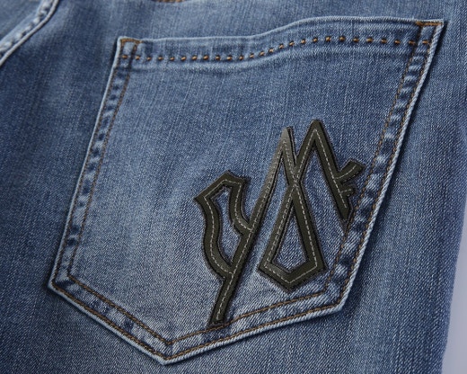 몽클레어 가죽패치로고 스판 데님진 중청 남성용(1컬러)