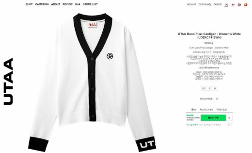 유타 매.장.판 모노 픽셀 가디건 화이트 여성용(1컬러)